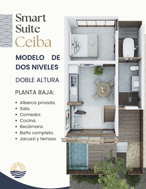 Villas de dos niveles con doble altura. Con una alberca privada y terraza, ideal para familias o grupos. Vive el lujo en su máxima expresión.